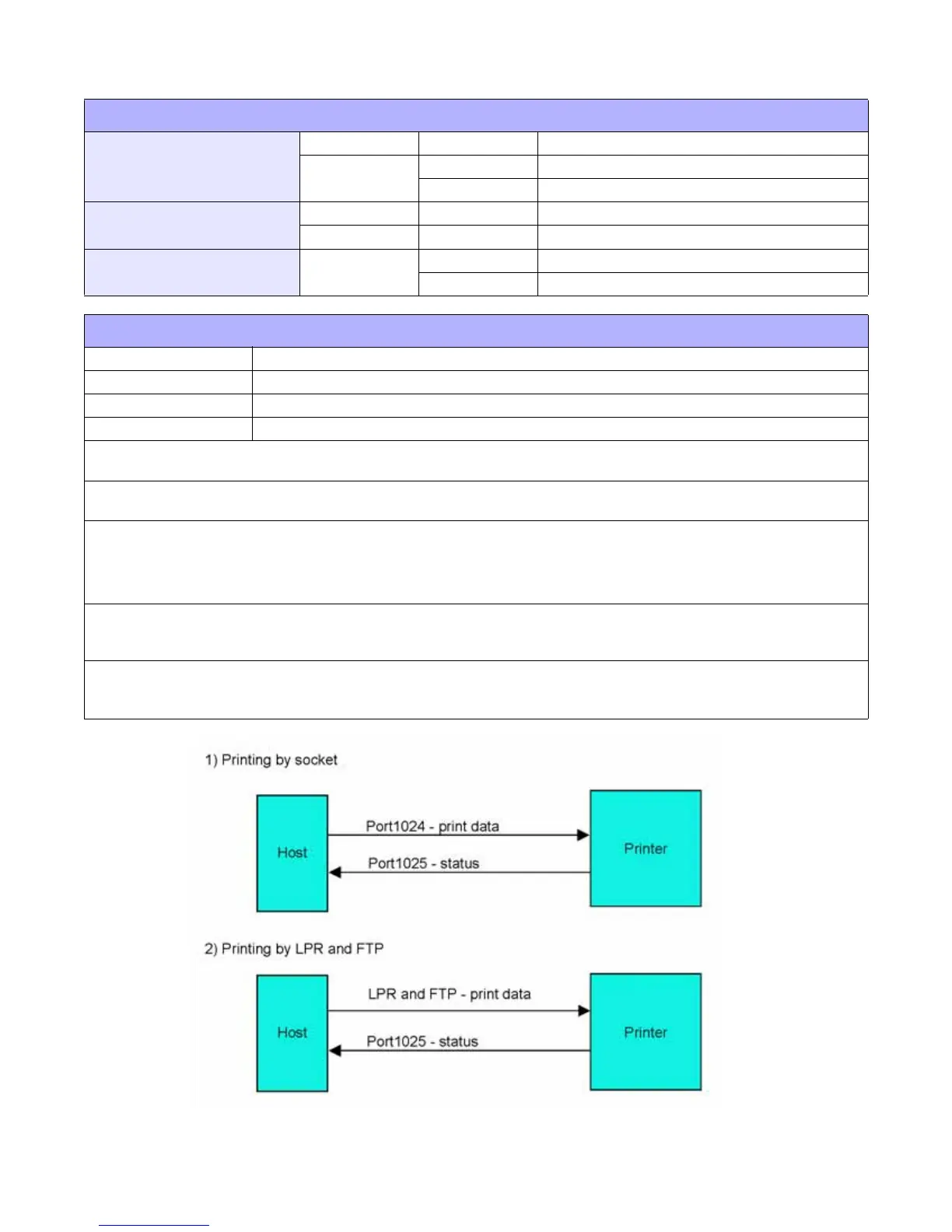 NOTE: Print data can be sent by LPR and FTP of TCP/IP and dedicated socket protocol. Printer status is obtainable by ded-