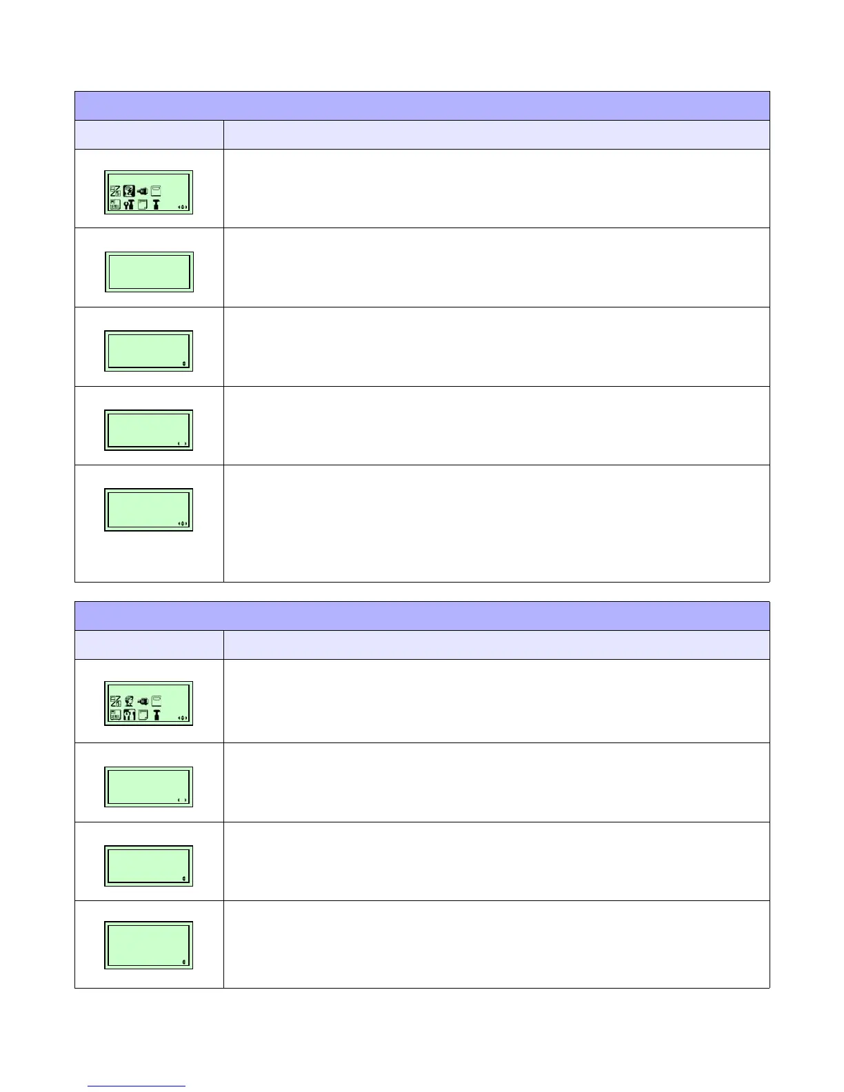 MENU DEFINITION TABLES
