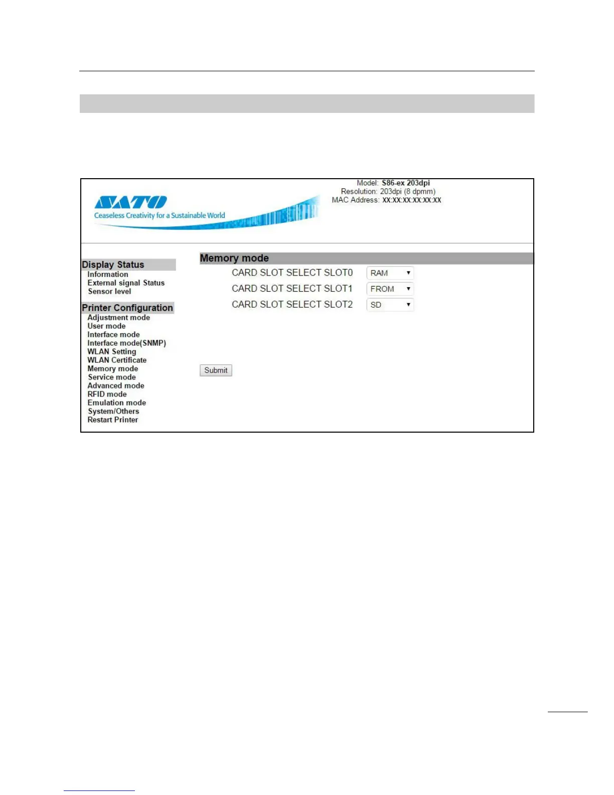 After logging in, the Memory mode page is shown as follows.