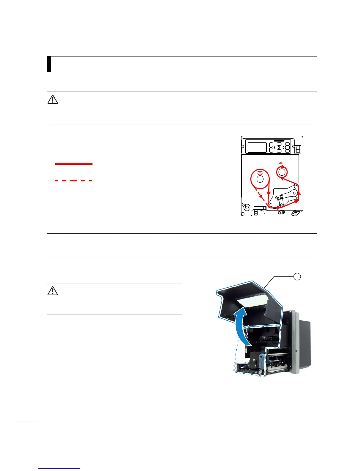 • The print head and its surroundings are hot after printing. Be careful not to touch it, to avoid being burned.