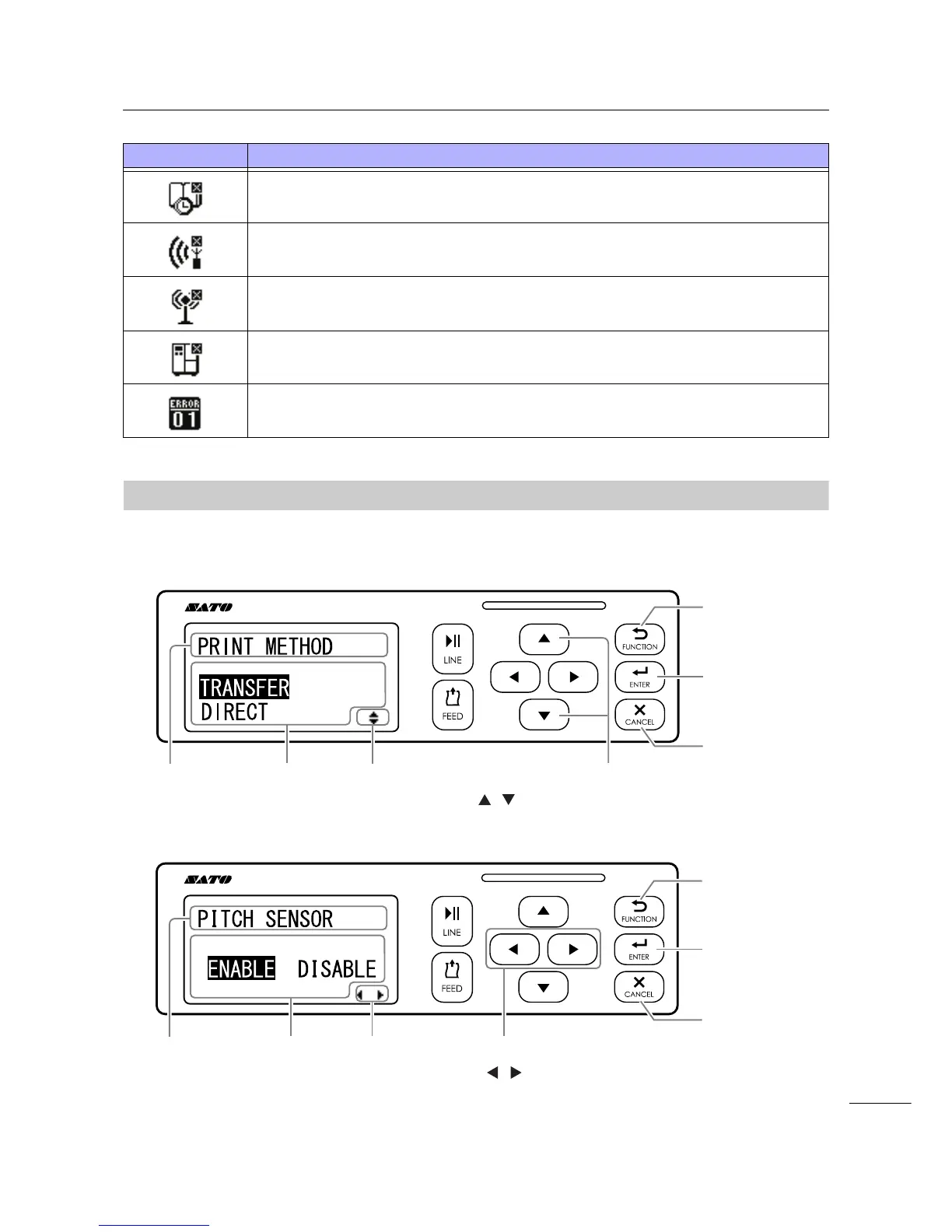 In various setting mode, the setting display is shown as follows. This section also describes the functions
