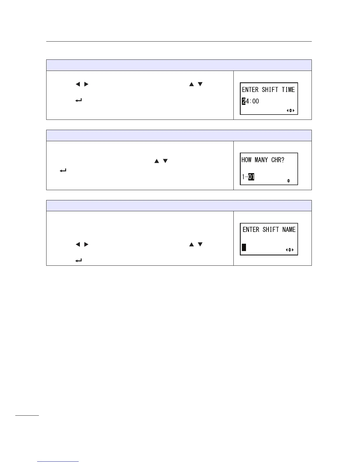 Press the ENTER button to save the work shift name.