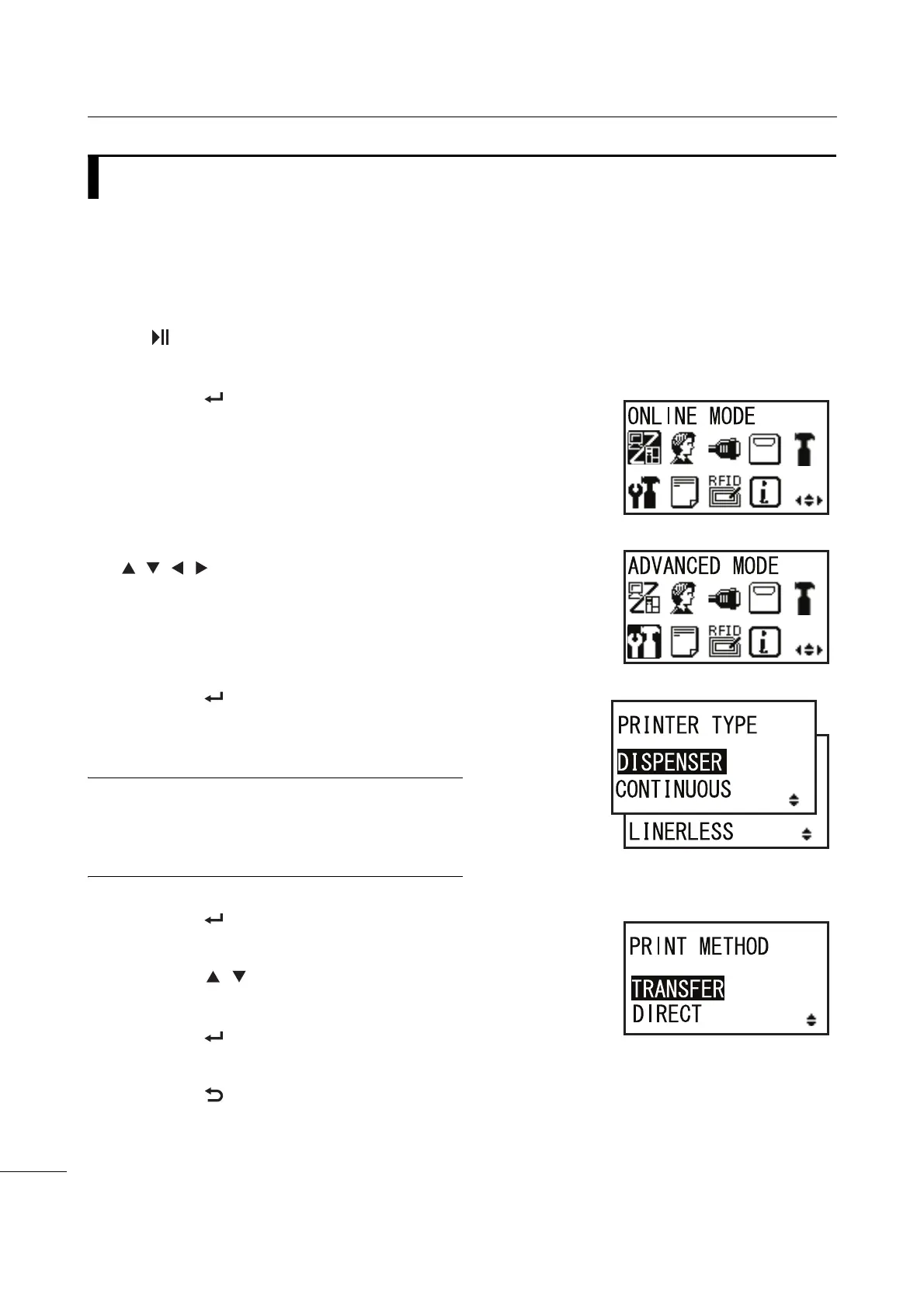 PRINTER TYPE shows on the screen.
