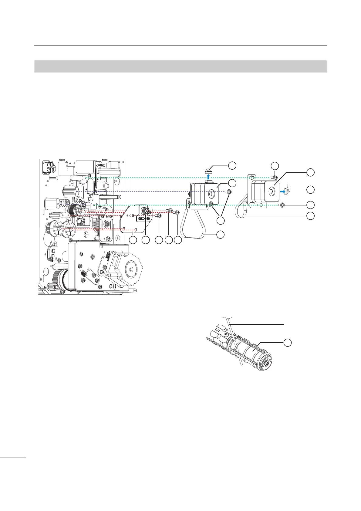 5 If you need to replace the timing belt of the ribbon rewind motor, perform steps 6