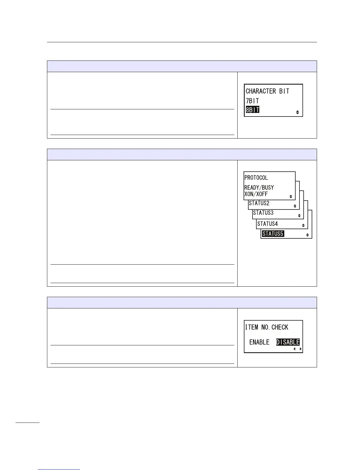 • STATUS5: When selected, the printer will proceed to the ITEM NO.