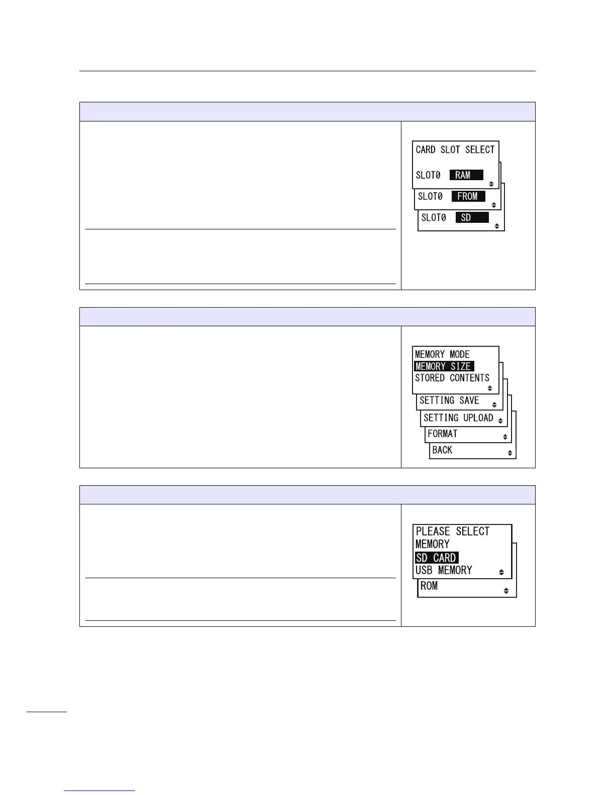 • FORMAT: Initialize and format the selected memory.
