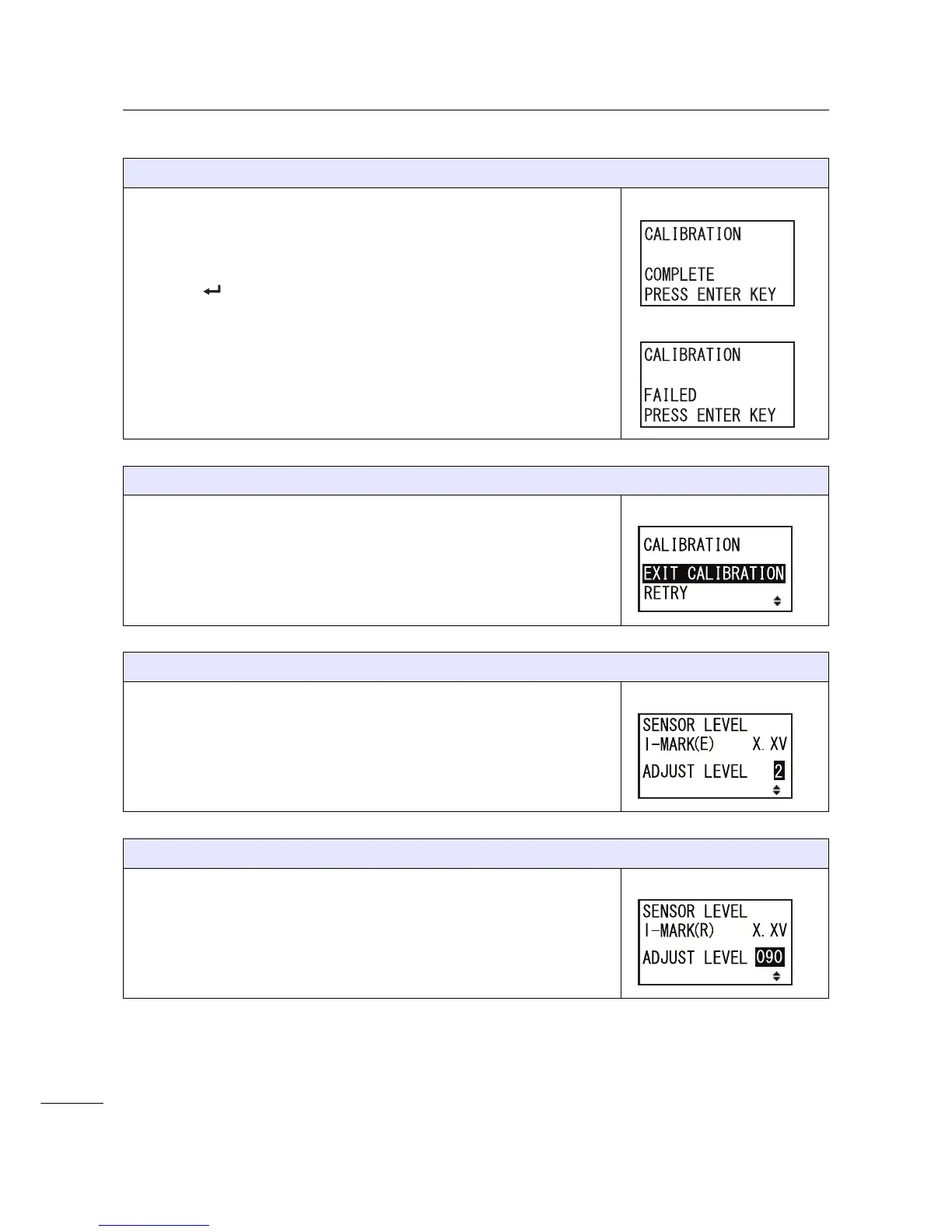 • EXIT CALIBRATION: Exit the automatic sensor adjustment.