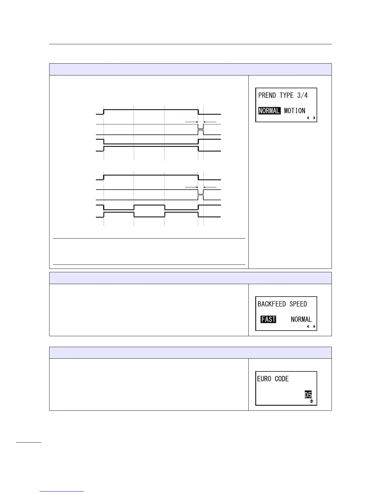 • NORMAL: Do not reflect the label feed/stop timing on PREND output.