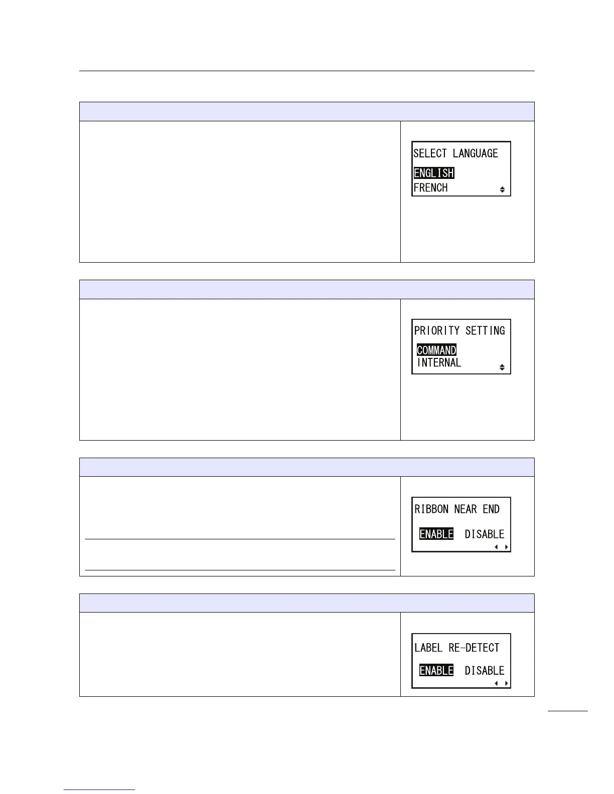 • INTERNAL: The above mentioned printer configuration set by the LCD