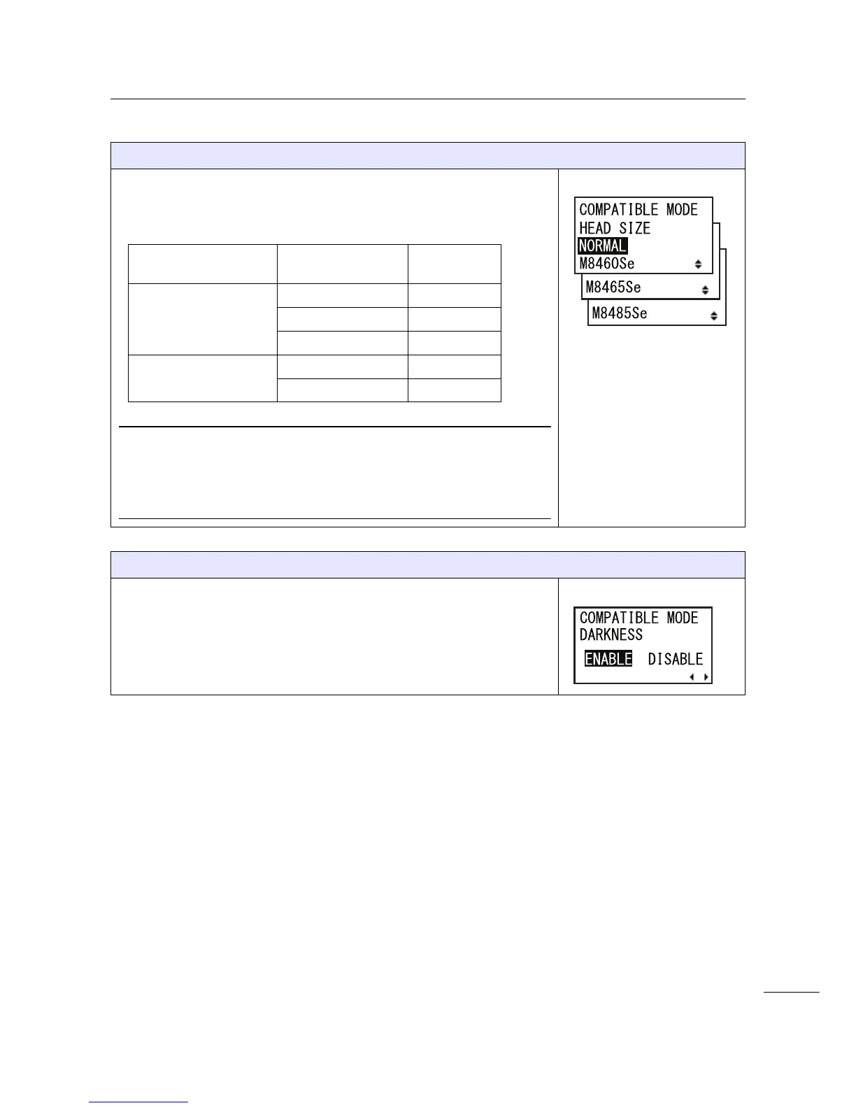 • Refer to Section 8.3.2 Compatible Mode - Print Head Width (only for