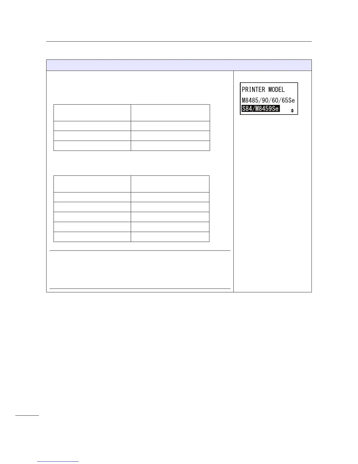 • S84/M8459Se: Double the value for Print Darkness <#E> and set it as