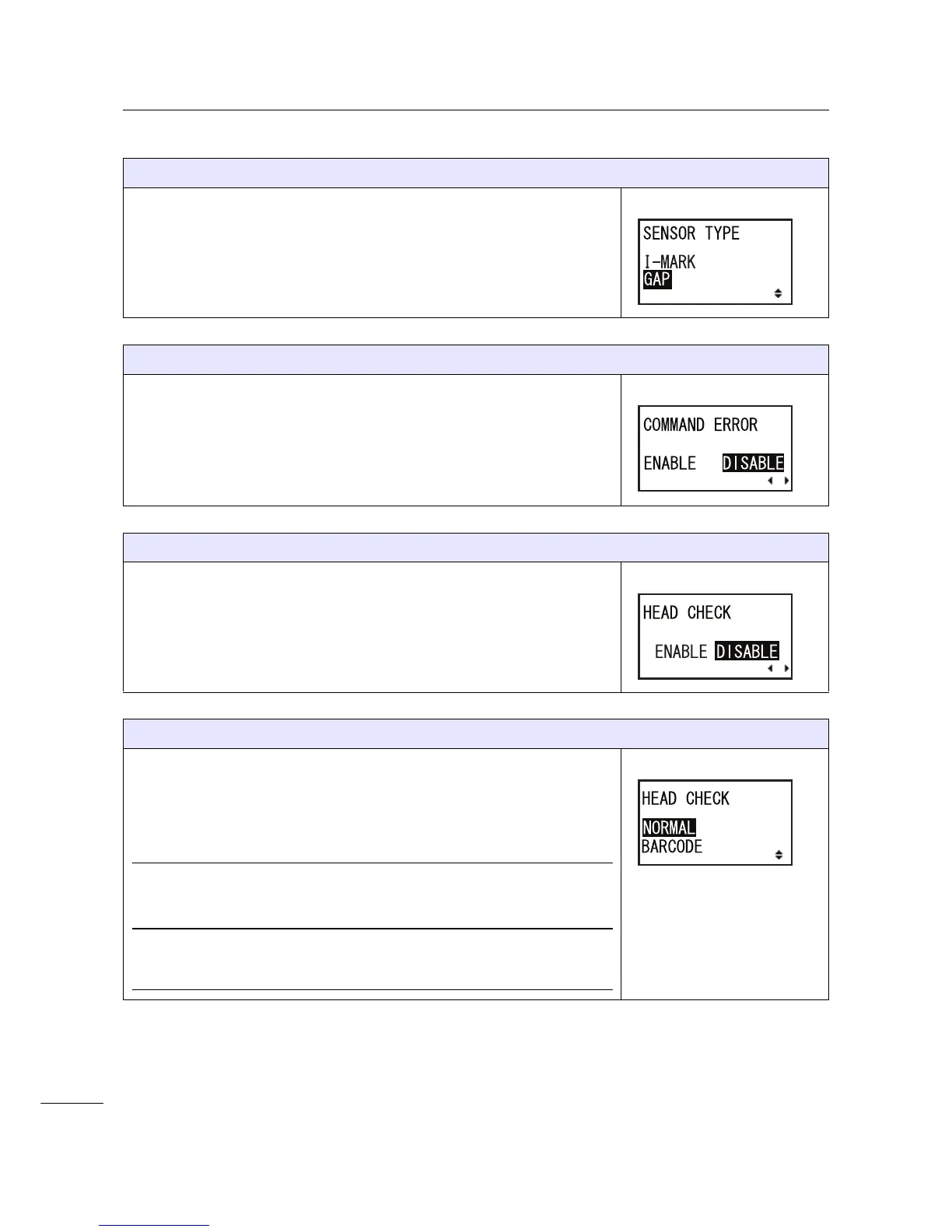 • BARCODE: Check only the area for printing a barcode. Head check is