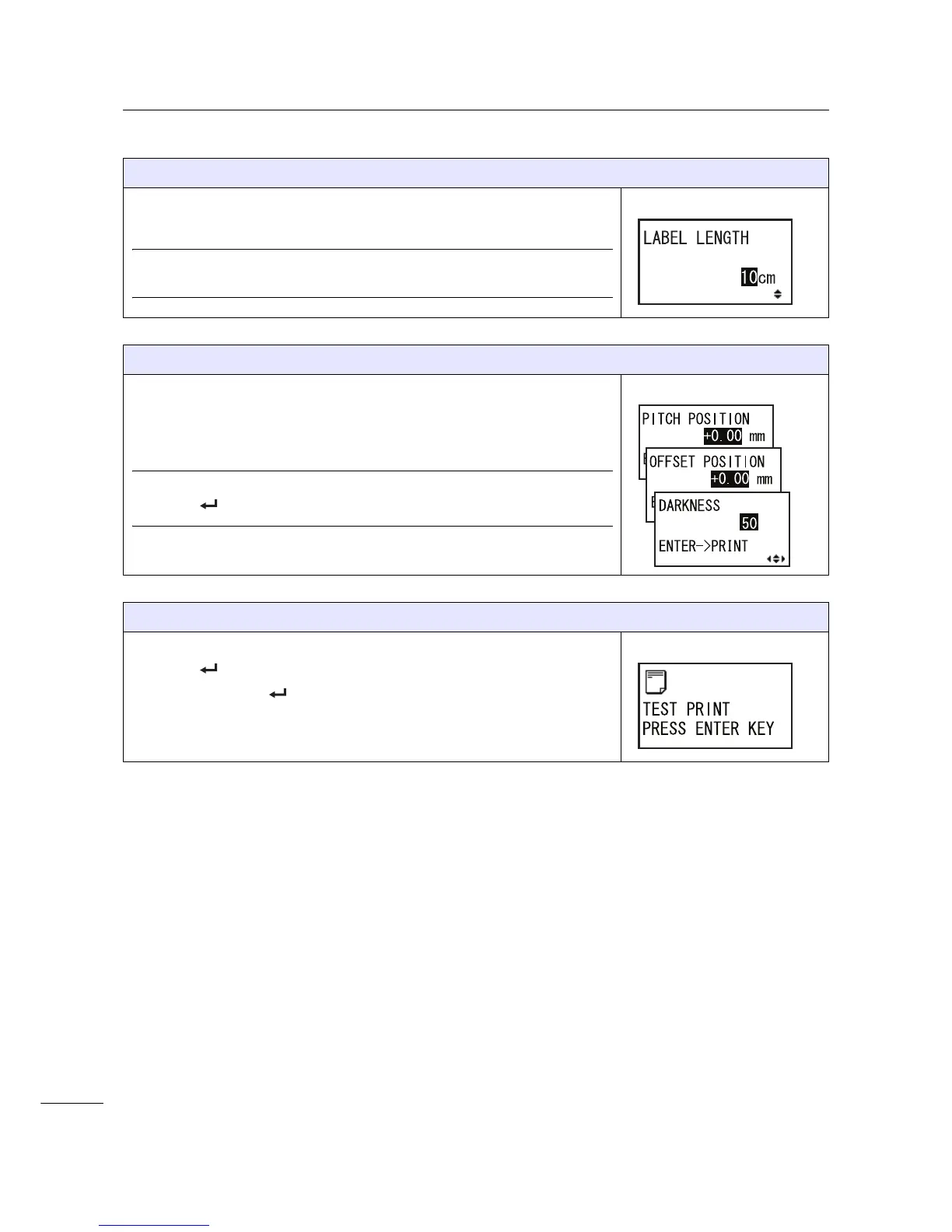 Press the ENTER button to start the test print.