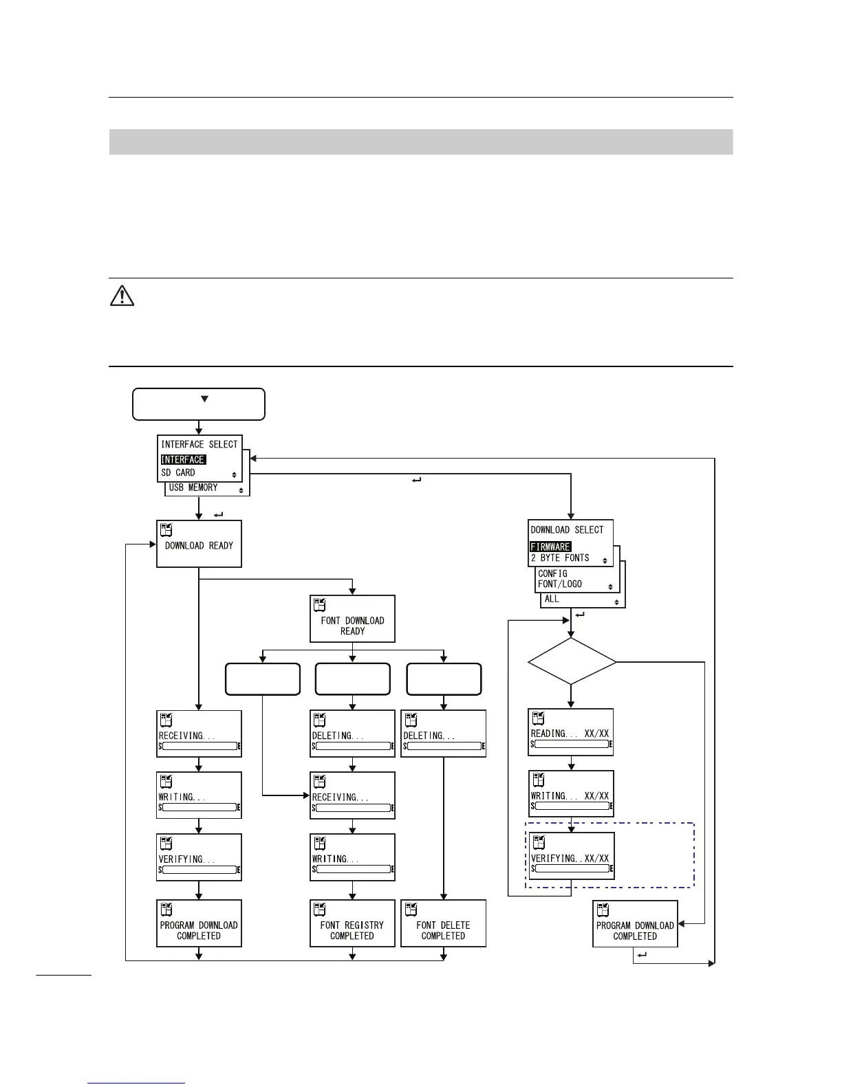 This download feature allows the operator to download data (firmware, font/logo, TrueType font,