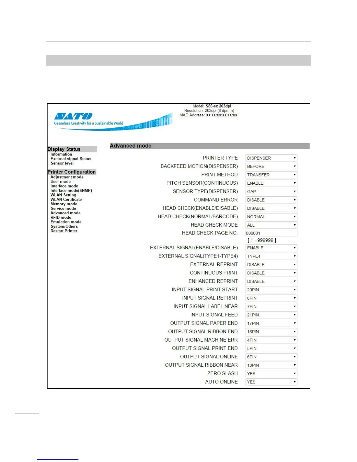 After logging in, the Advanced mode page is shown as follows (continued to the next two pages).
