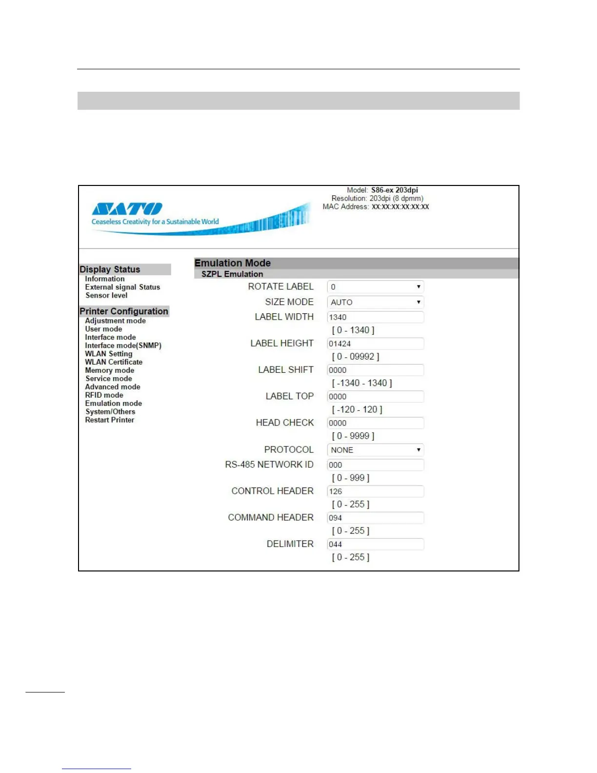 Refer to Section 5.2 SZPL Emulation Mode, Section 5.3 SDPL Emulation Mode or Section 5.4 SIPL