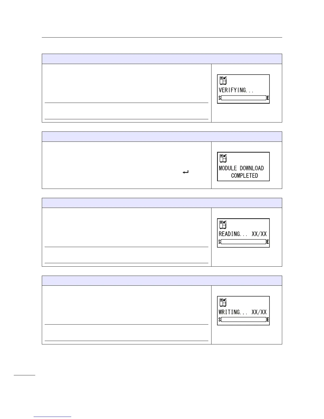After writing the module data, it goes to the VERIFYING… screen.
