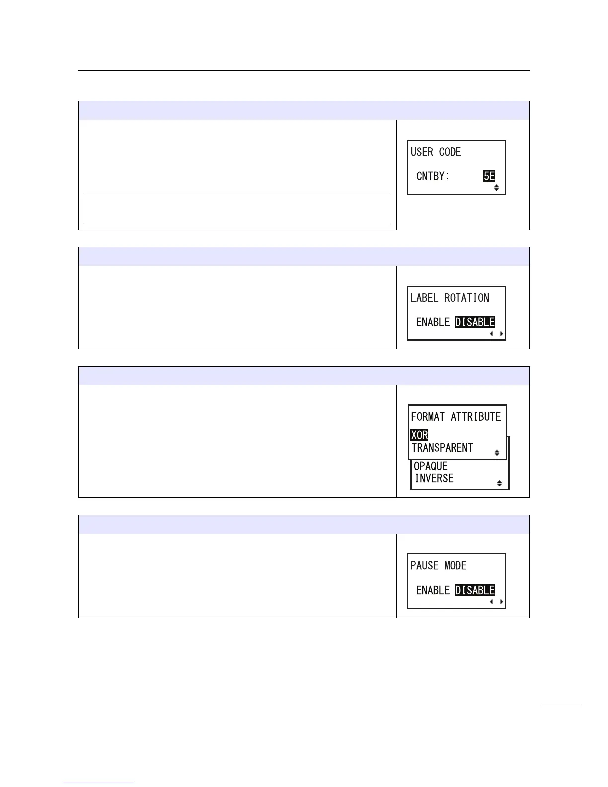 • ENABLE: Enable the pause mode. The printer enters offline mode after