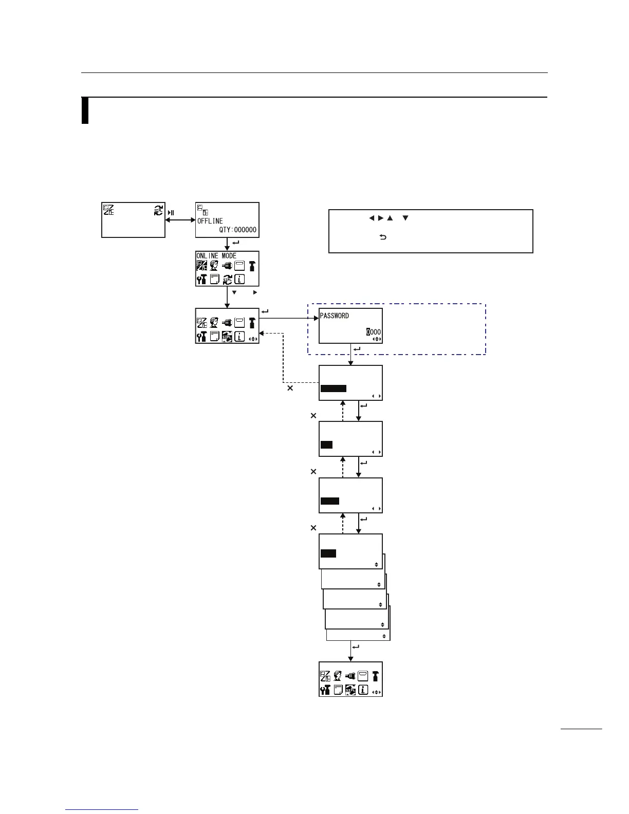 The flowchart shows the sequence of the setting screens for the SIPL emulation firmware. The table