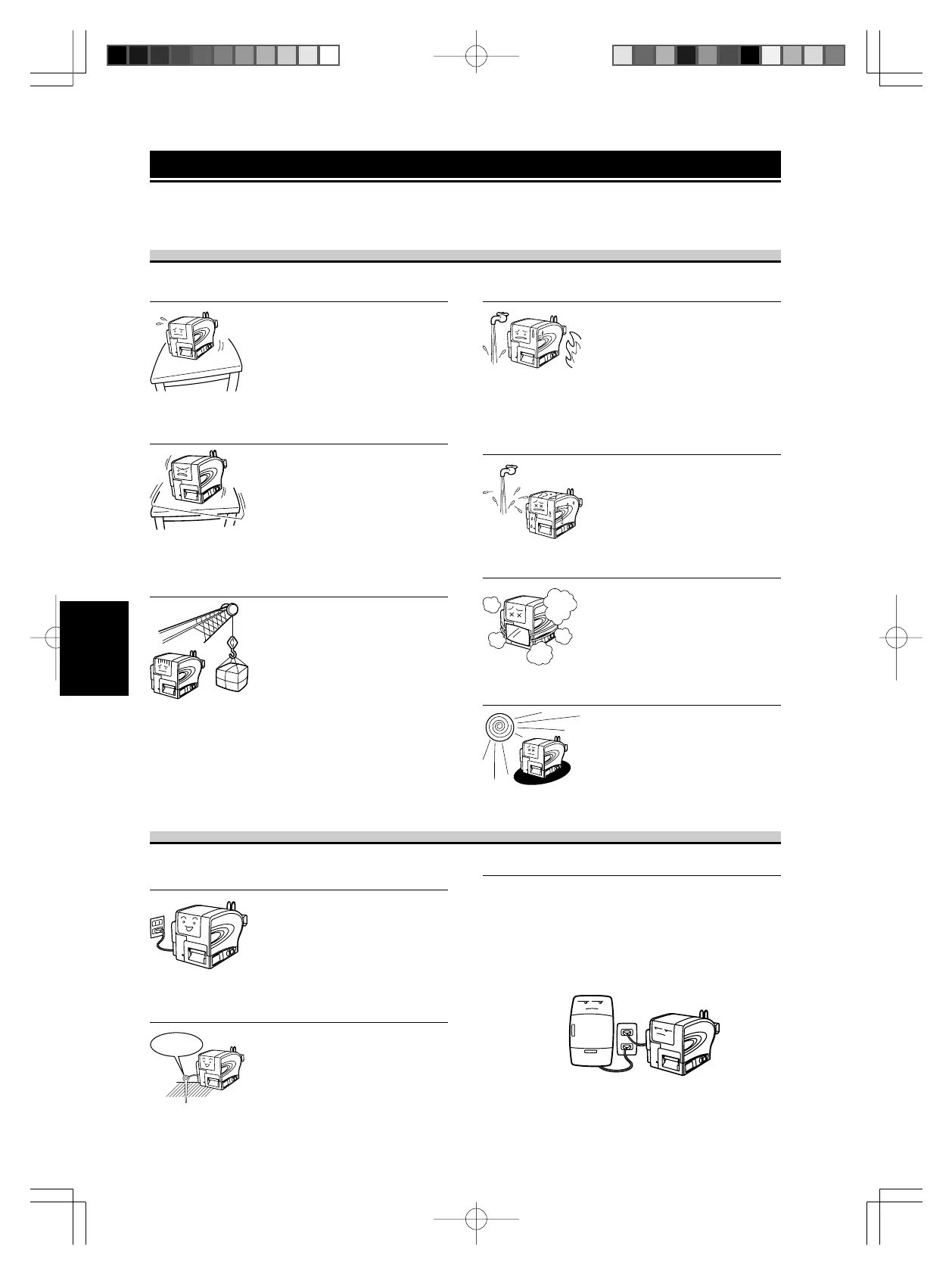 Halten Sie sich bei der Installation und Handhabung des Druckers an die nachstehenden Anweisungen.