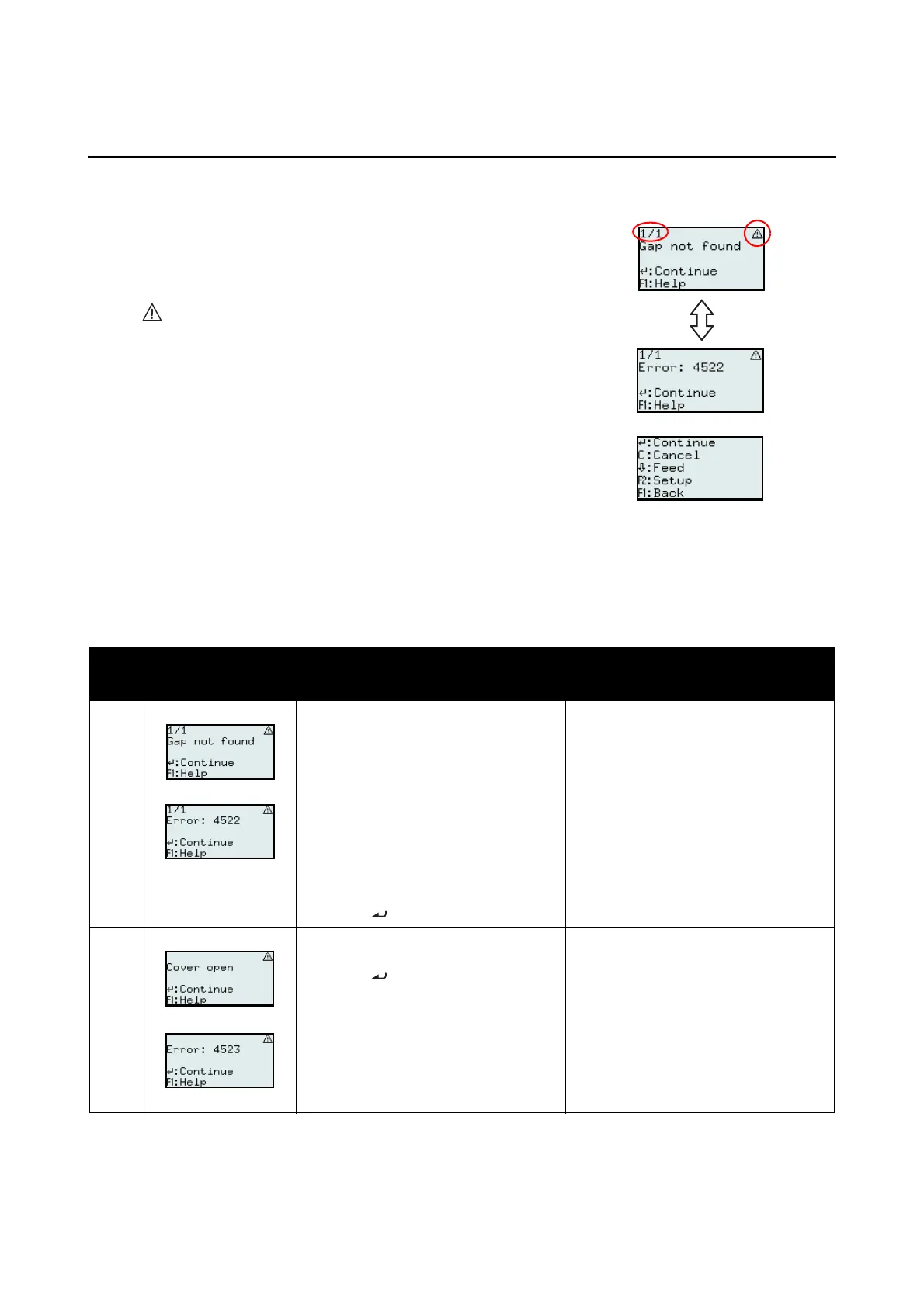 When printer detects an error, the error message will be displayed on