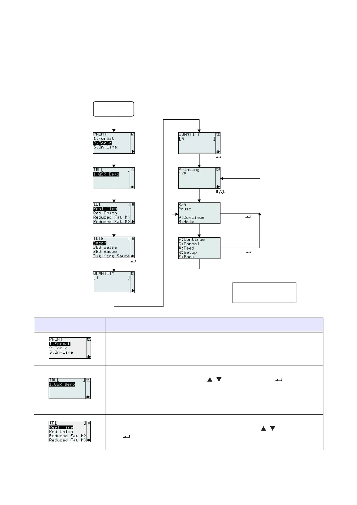 If there is only one table in the printer, this screen will not be displayed. You will