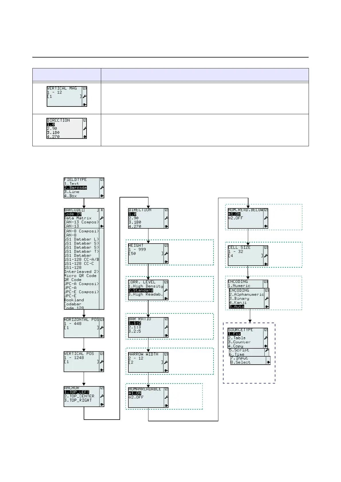 3.6.4 When Barcode is selected in the FIELDTYPE menu