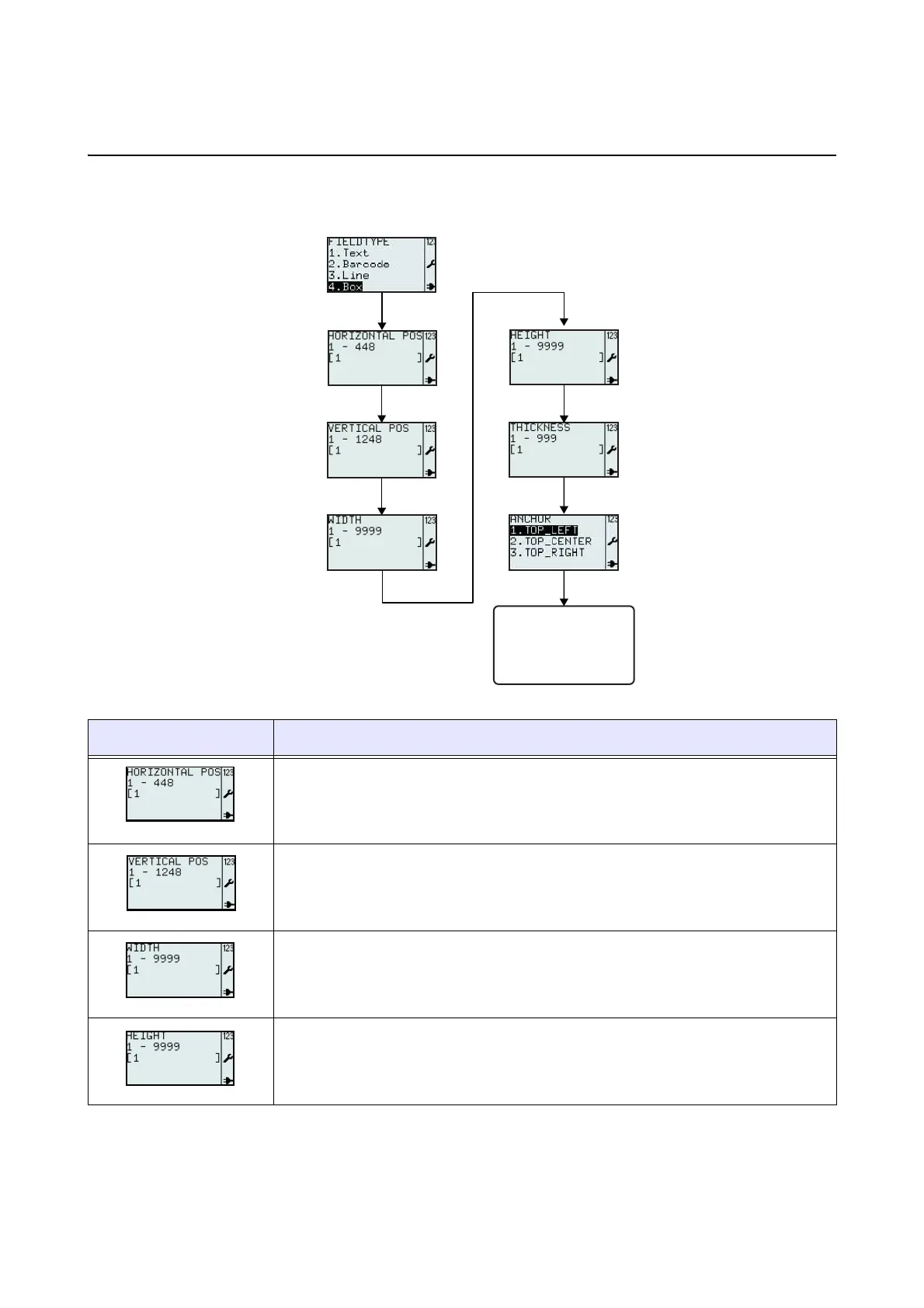 3.6.7 When Box is selected in the FIELDTYPE menu