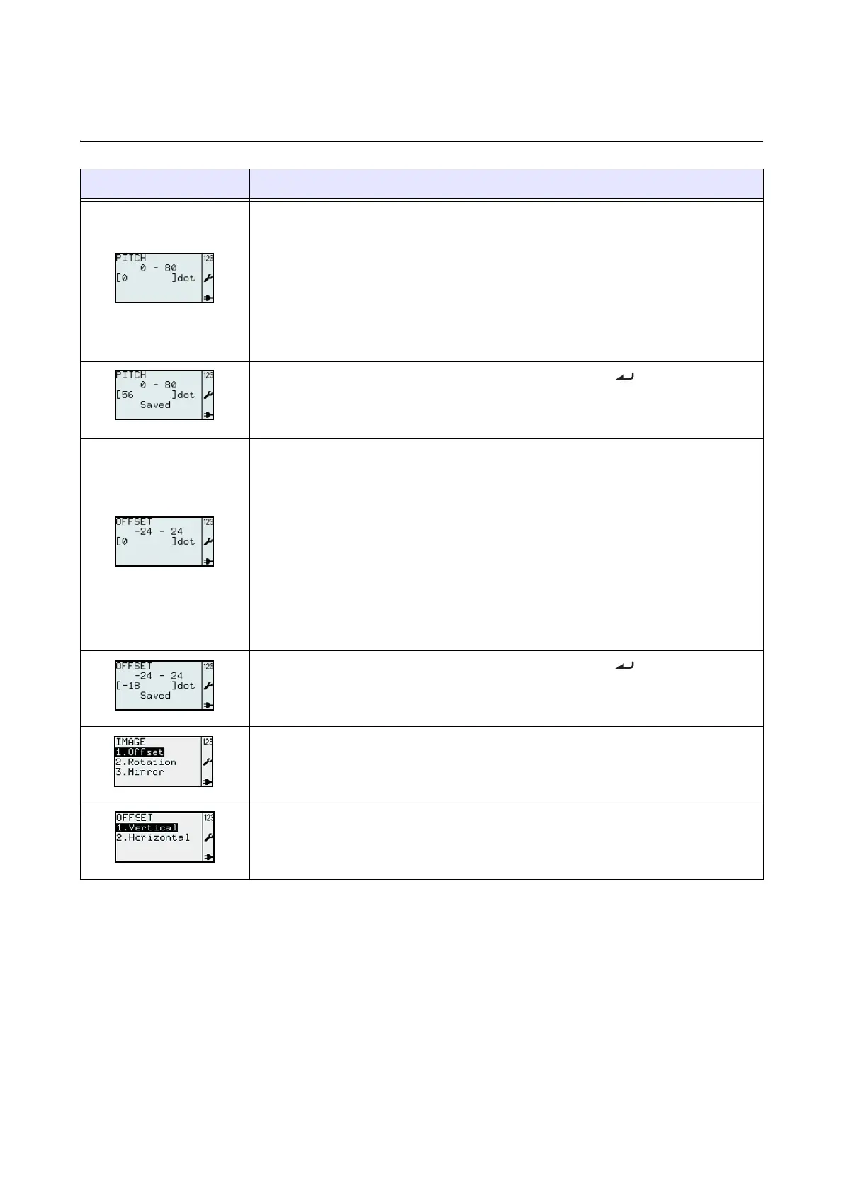 OFFSET menu.