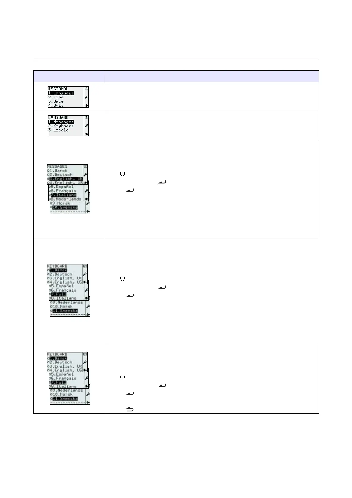 Enables the selection of 1.Messages, 2.Keyboard or 3.Locale.