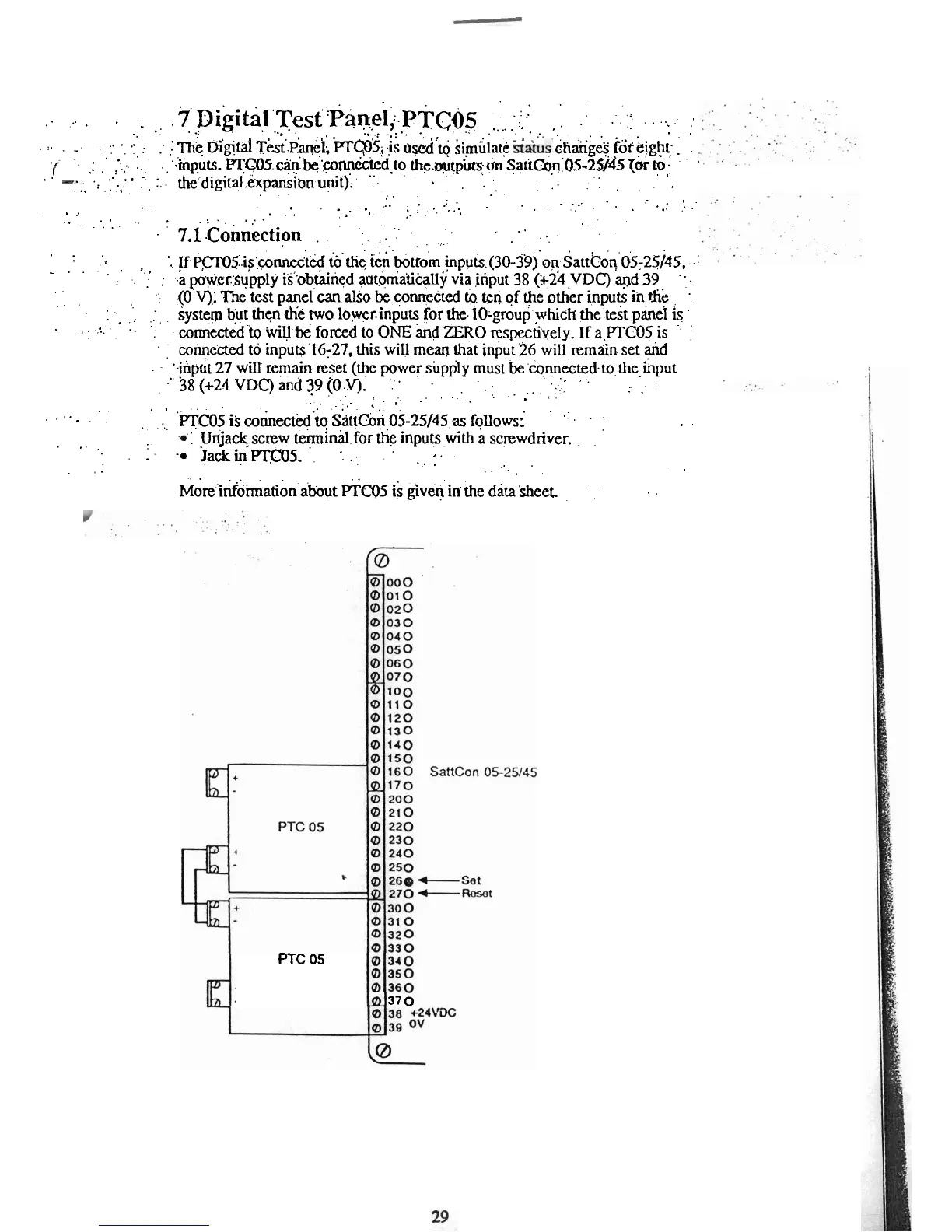 SattControl SattCon 05-45 - 7 Digital Test Panel, PTC05; 7.1 Connection