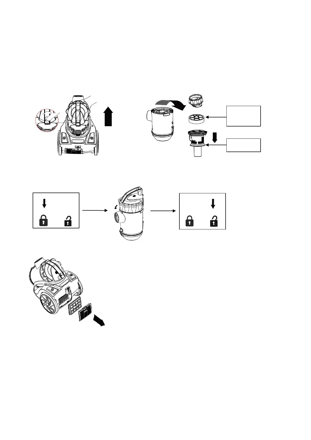 Removing & cleaning the pre-motor filter (Hepa filter), dust filter, and air outlet filter (Hepa filter)