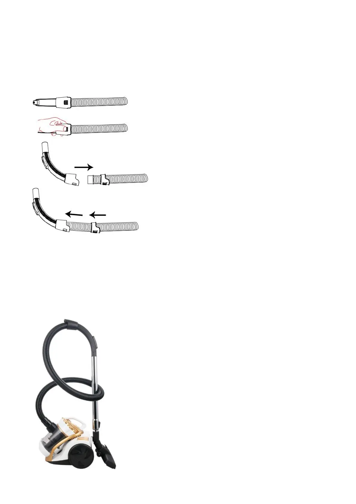 toutes les obstructions. Pour réassembler le tuyau, insérez d’abord le tuyau flexible dans le manche, puis