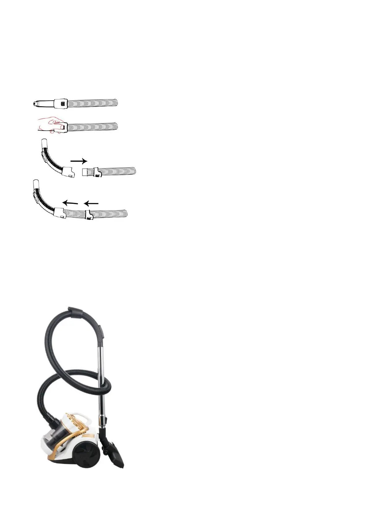 Om de slang opnieuw aan te brengen, duw de flexibele slang eerst in de handgreep en klik het aansluitstuk