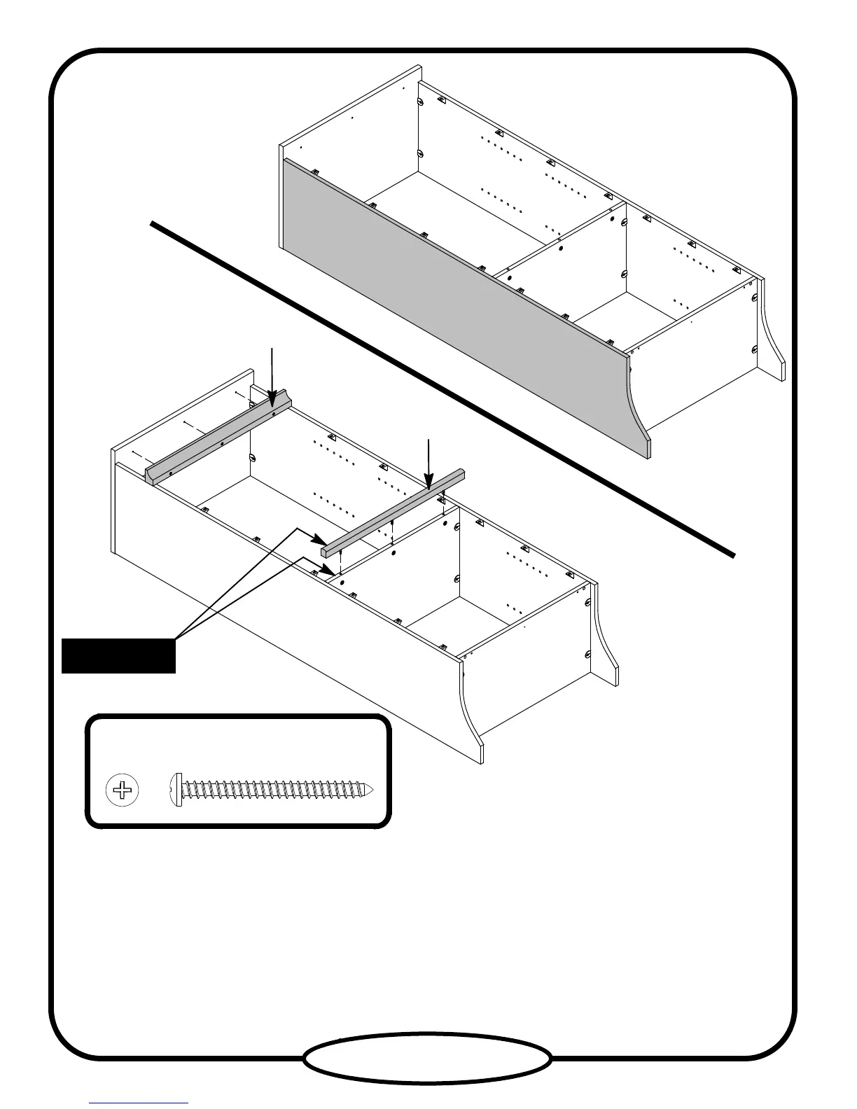 - Lock the SHELF MOLDING (K) to the SHELF (D). With the CAM SCREWS inserted into the HIDDEN CAMS,