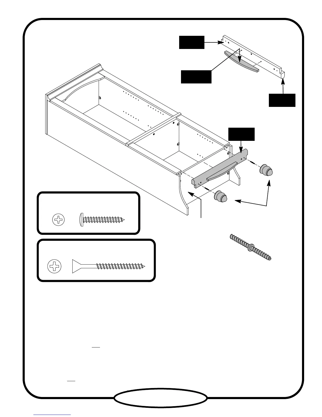 - Fasten the BOTTOM MOLDING (L) to the BOTTOM (E) as shown. Use three BLACK 1--1/8” PAN HEAD
