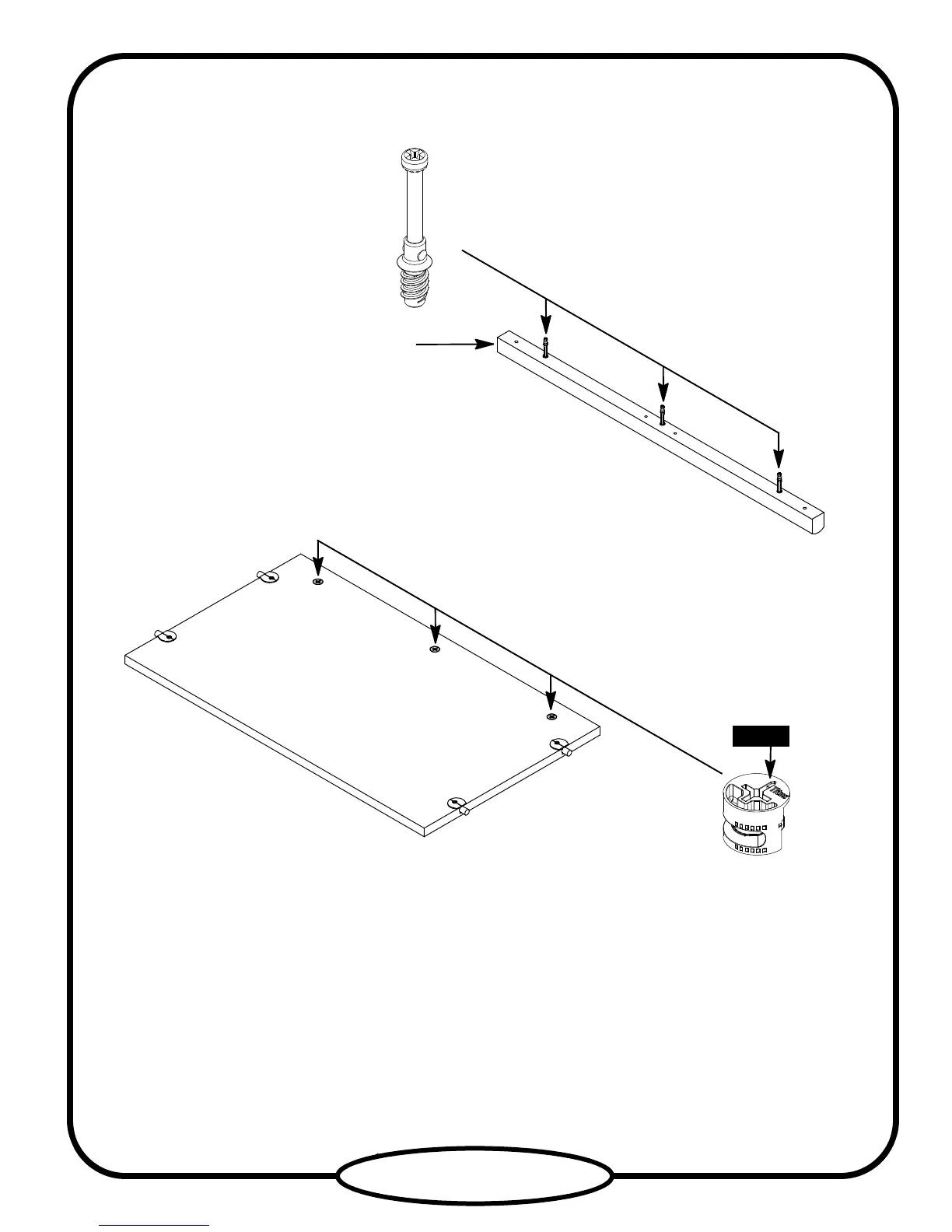 - Use your screwdriver to turn three CAM SCREWS (R2) into the SHELF MOLDING (K).