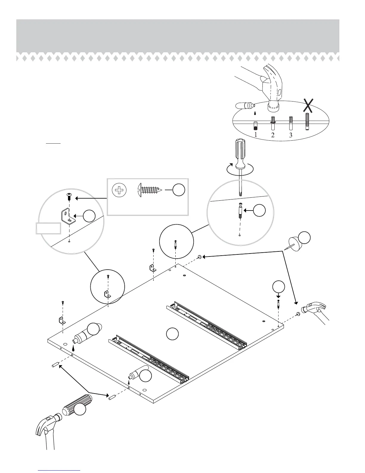Fasten three CORNER BRACKETS (T1) to the long edge of the