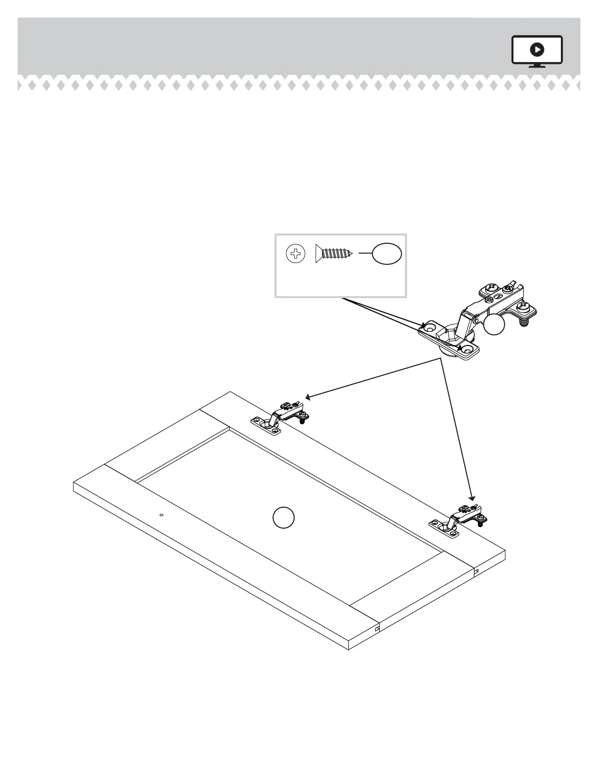 Fasten two HINGES (QQ) to the DOOR (M). Use four