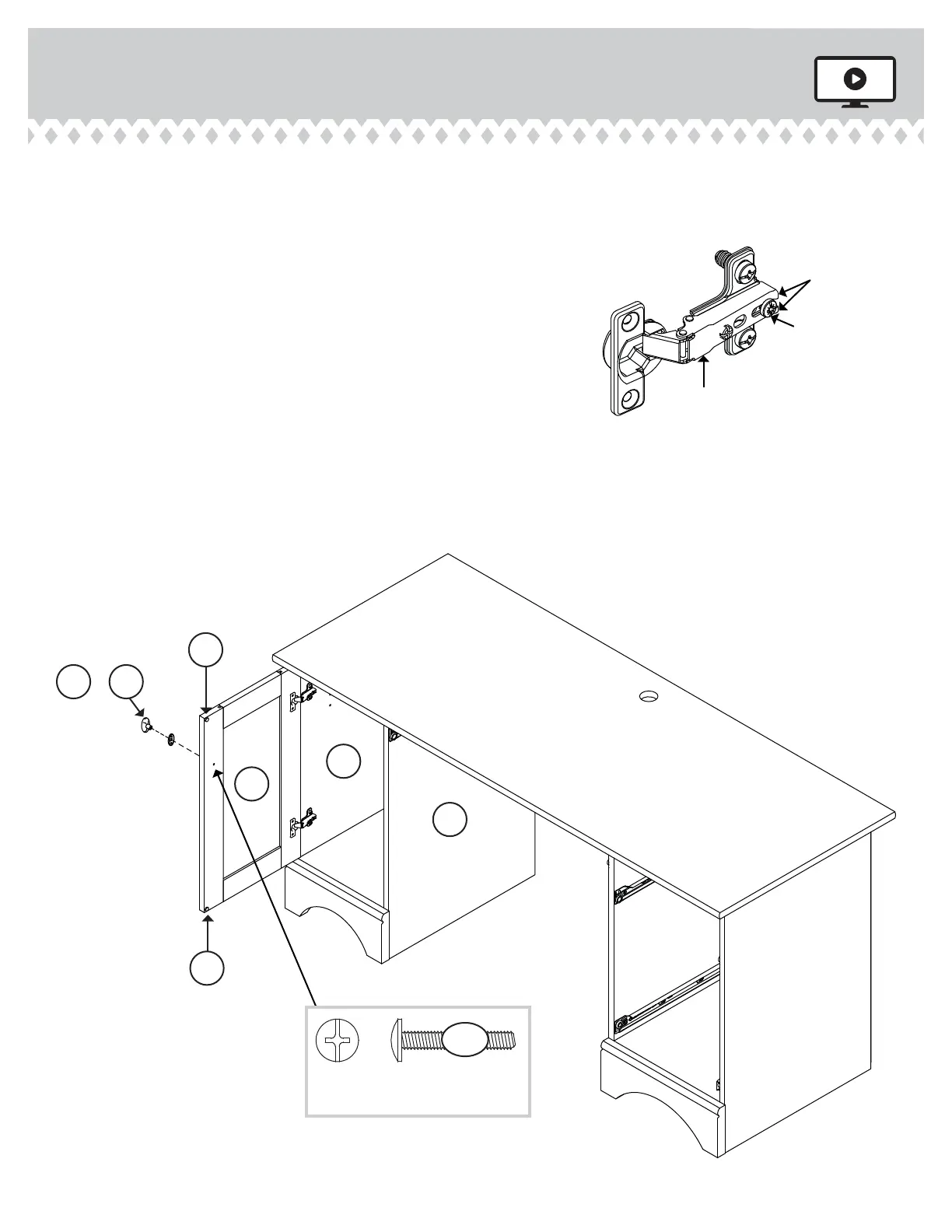 lower diagram. Use the screws in the HINGES. You should