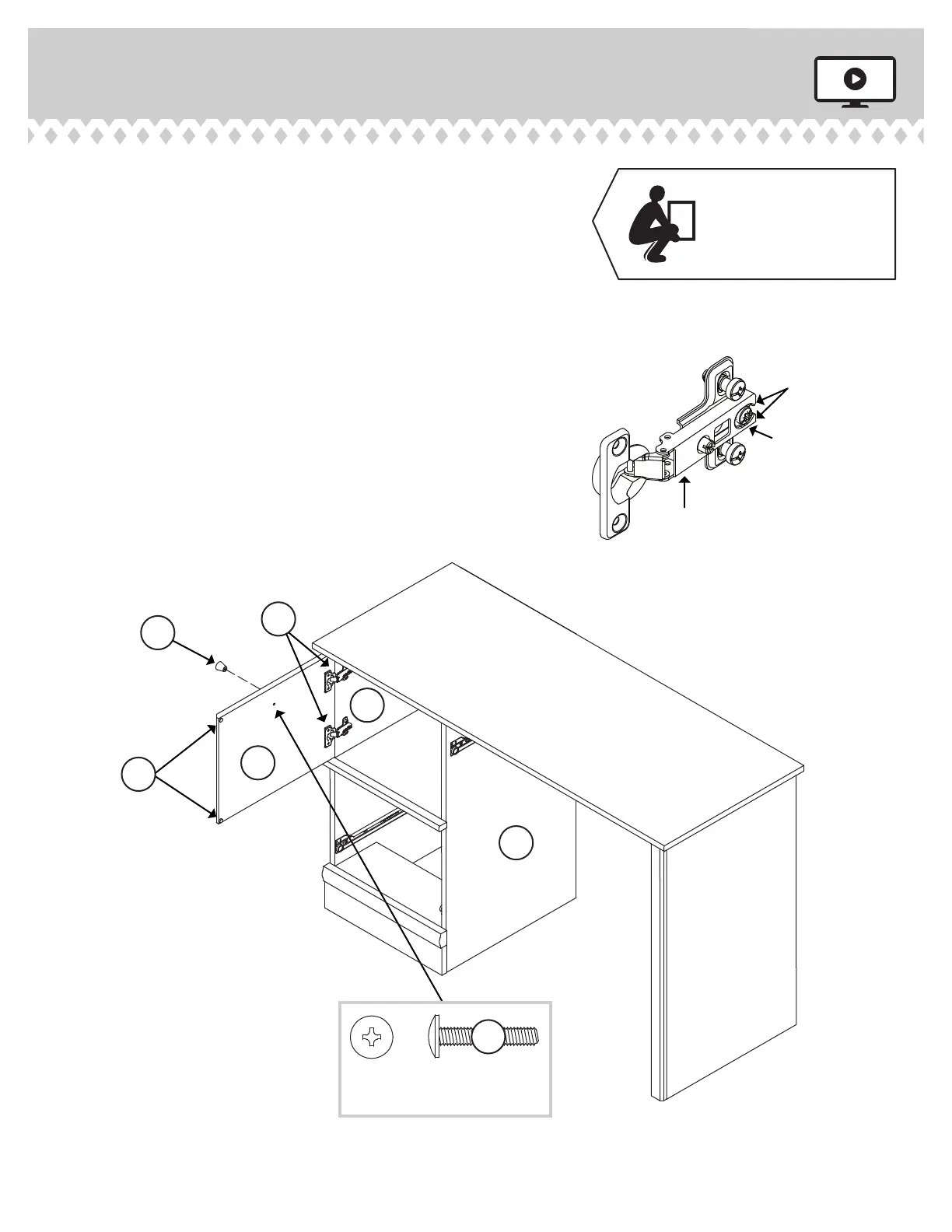 Fasten the DOOR (I) to the LEFT END (B). Use the screws