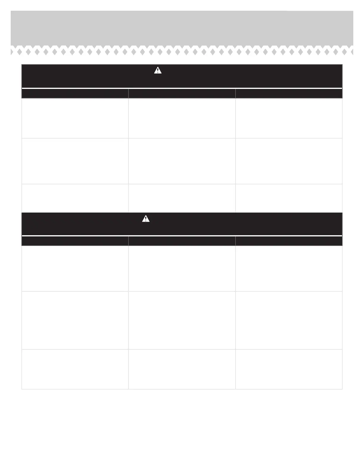 d’accident ou peut endommager le mobilier et les articles ménagers. Lire attentivement le tableau suivant.