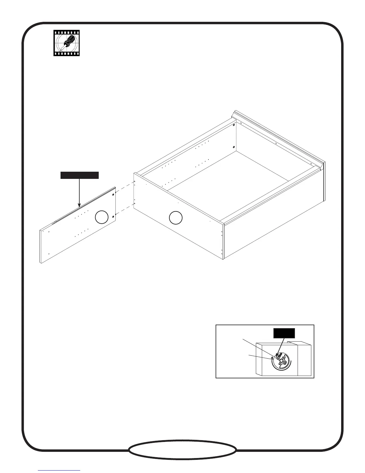 Fasten the LOWER LEFT END (D) to the SHELF (G). Tighten two HIDDEN CAMS.