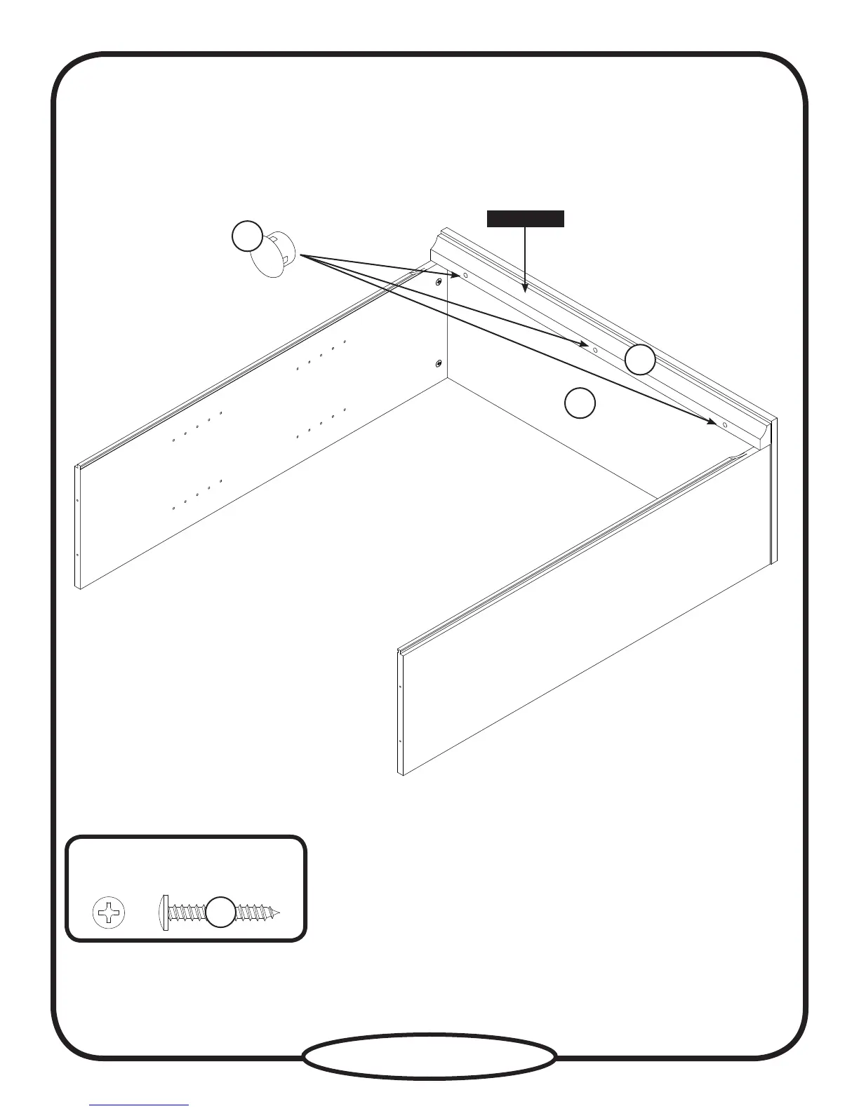 Fasten the TOP MOLDING (M) to the TOP (E). Use three BLACK 1-1/8” PAN HEAD SCREWS (Y).