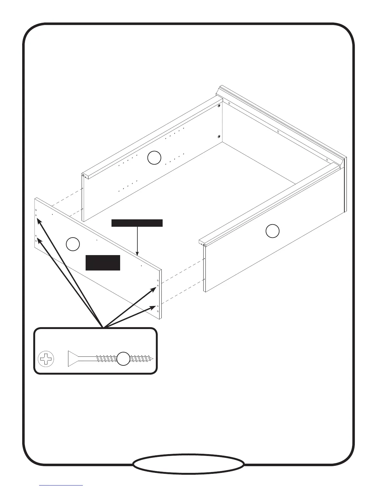 Fasten the SHELF (G) to the ENDS (A and B). Use four BLACK 1-7/8” FLAT HEAD SCREWS (X).