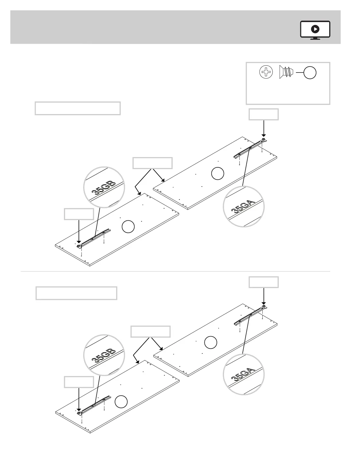 Use four GOLD 5/16" FLAT HEAD SCREWS (3S).