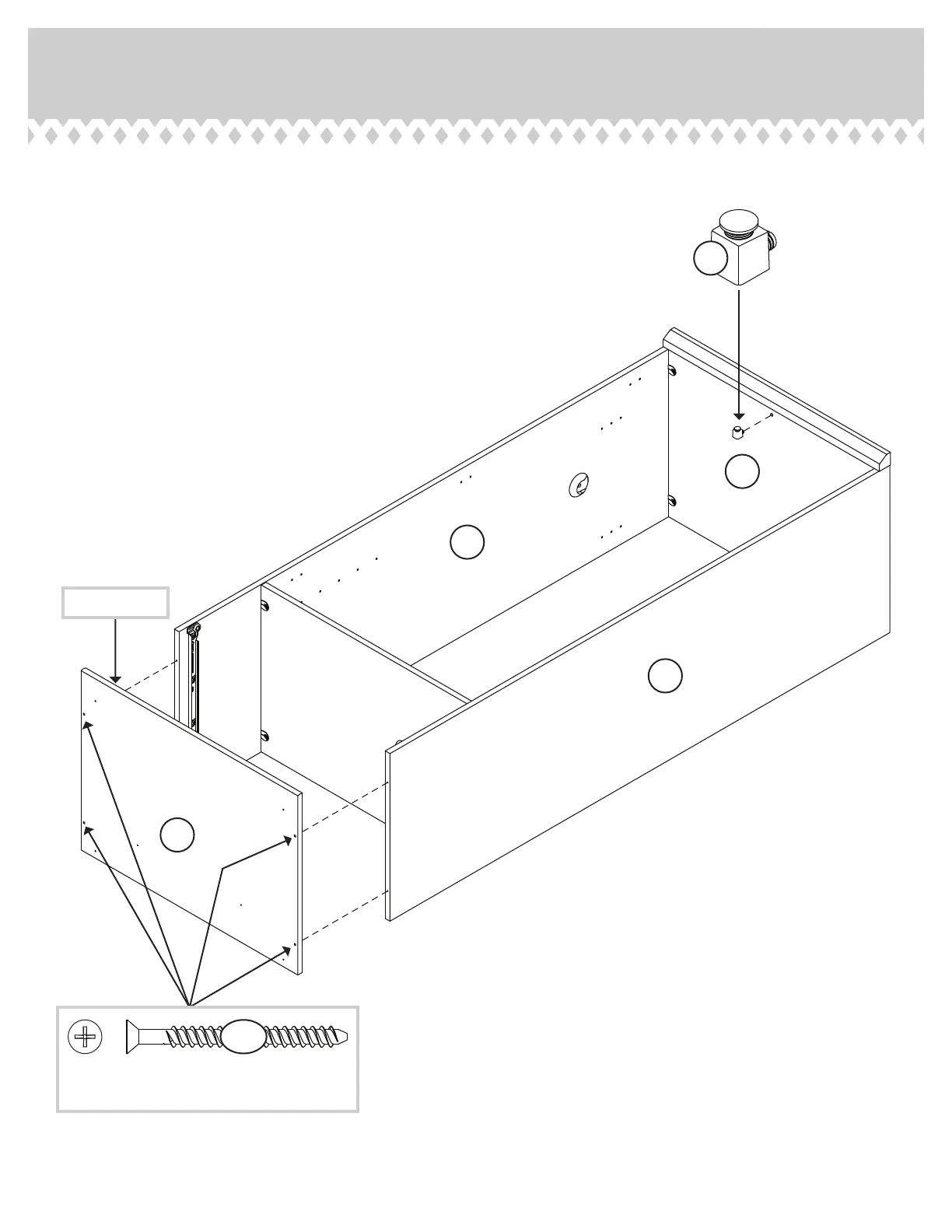 Fasten the BOTTOM (D3) to the ENDS (A2 and B2). Use