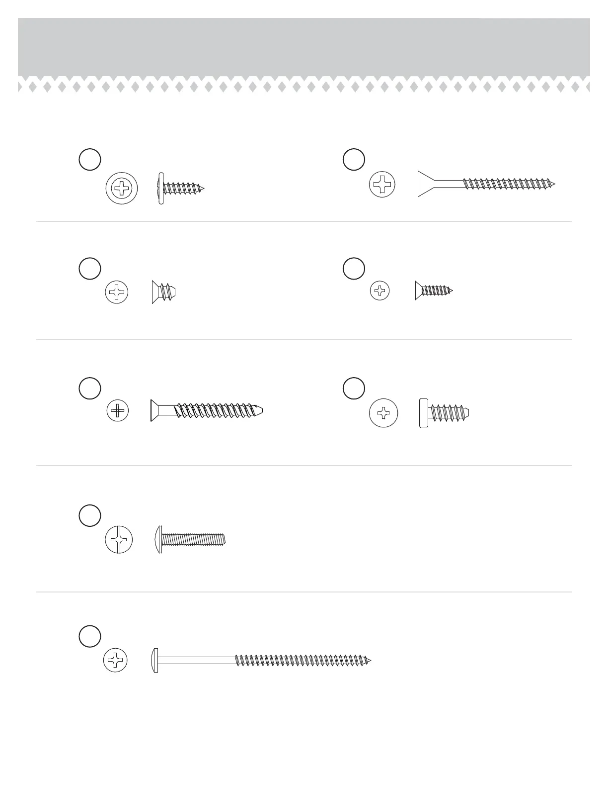 å Screws are shown actual size. You may receive extra hardware with your unit.