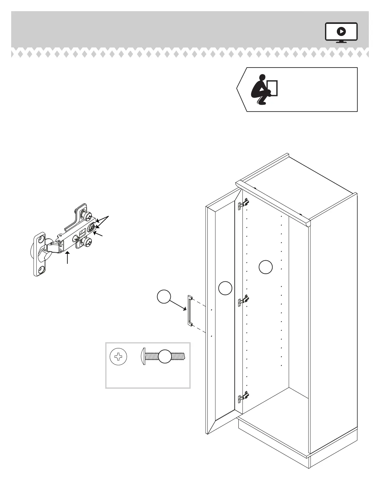 Fasten a PULL (97K) to the DOOR (F). Use two BLACK 7/8"