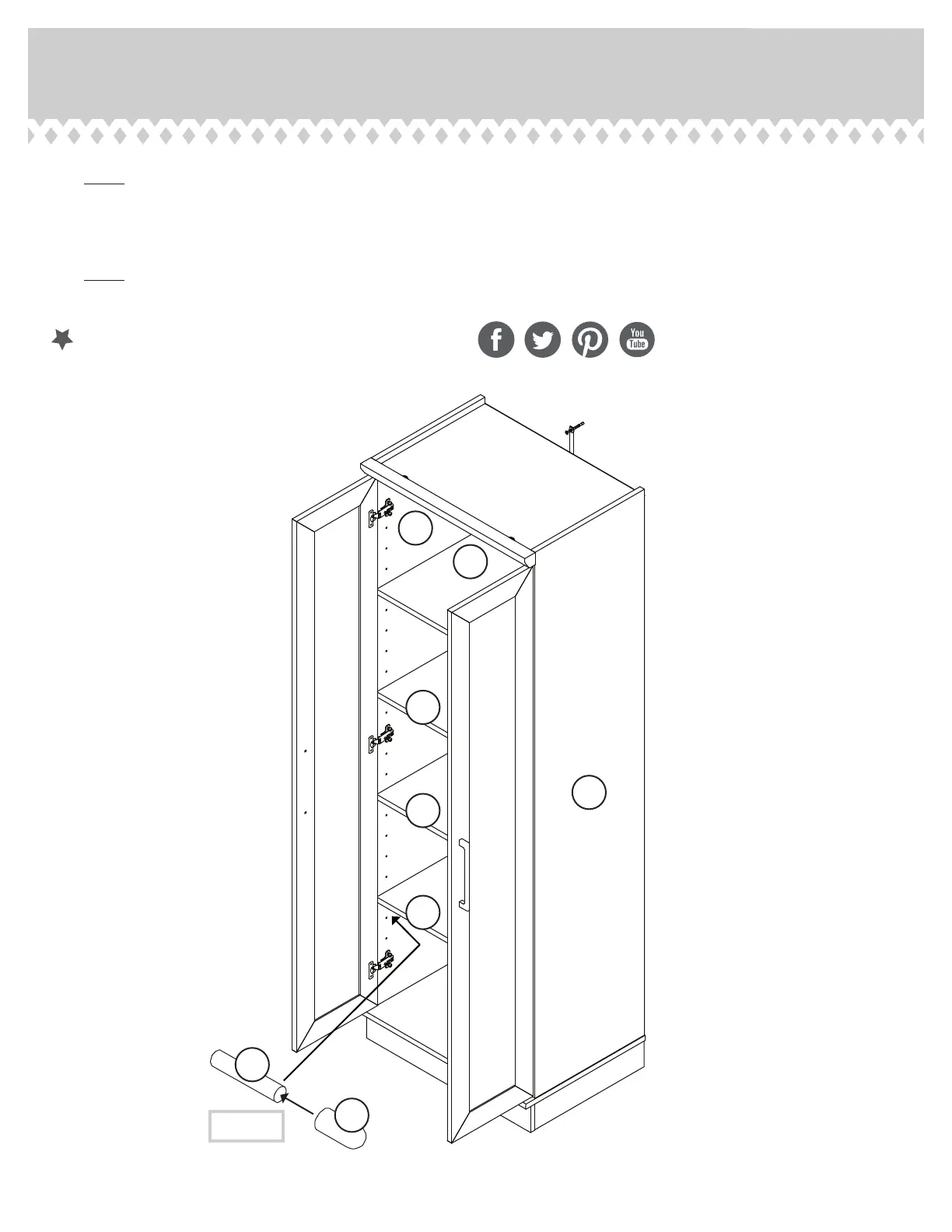 of your choice in the ENDS (A2 and B2). Set the ADJUSTABLE SHELVES (G) onto the METAL PINS.